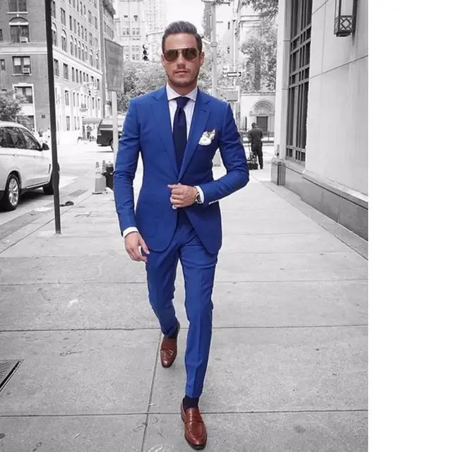 Style Italien Bleu Marié Tuxedos Décontracté Homme Costume Sur
