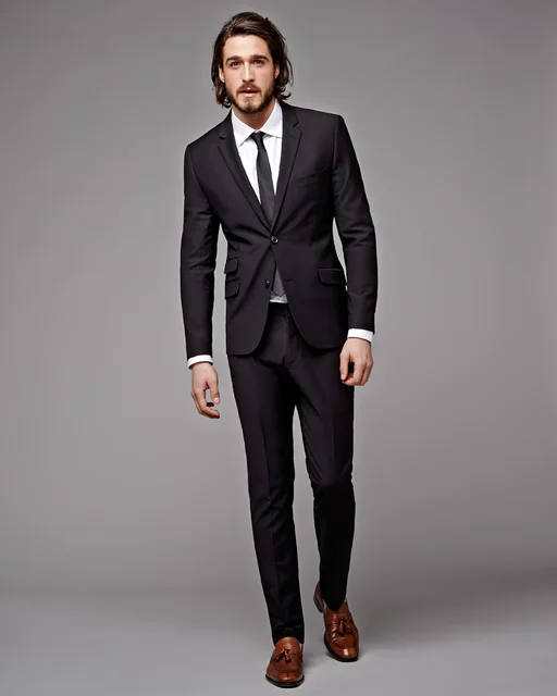 Costume Homme Style Italien Noir Sur Mesure 2 Pièces Hommes Mariage