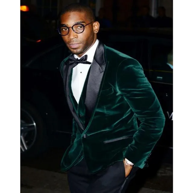 Costumes Hommes Italiens En Velours Vert Foncé Sur Mesure Veste