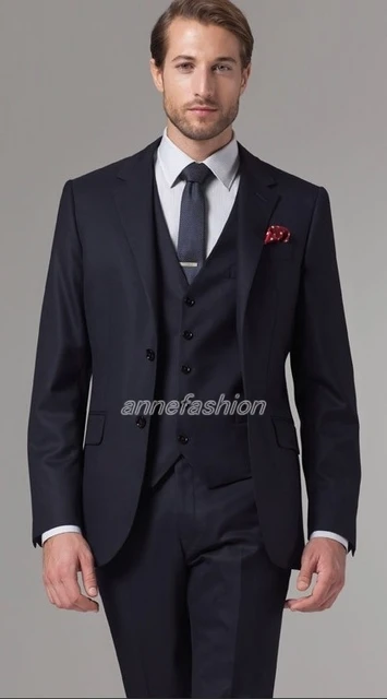 Style Italien Sur Mesure Bleu Marine Marié Tuxedos Slim Fit Hommes