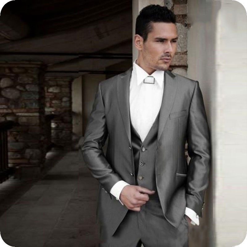 Acheter Italien Argent Hommes Costumes Pour Le Mariage Marié Tuxedos