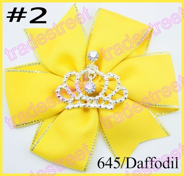 Free Shipping 20pcs 4 5 Pinwheel Hair Bows Crown Girl Hair Clips Rhonestone Toddle Hair Bows Baby Gift Hair Clips