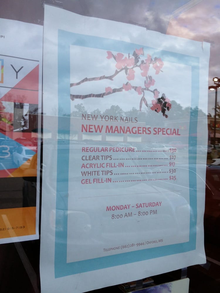 Their new location is 1906 university ave. Order online tickets tickets see availability directions locationtaglinevaluetext. New york nails is located at 2311 jackson ave w ste 306 oxford ms 38655.