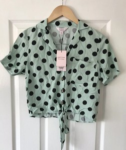 Miss Selfridge Mint Green Black Polka Dot Button Tie Top Uk 8 New