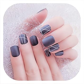 Amazon Com Girls 24pcs Black Color Fake Nails Ladies Short Size
