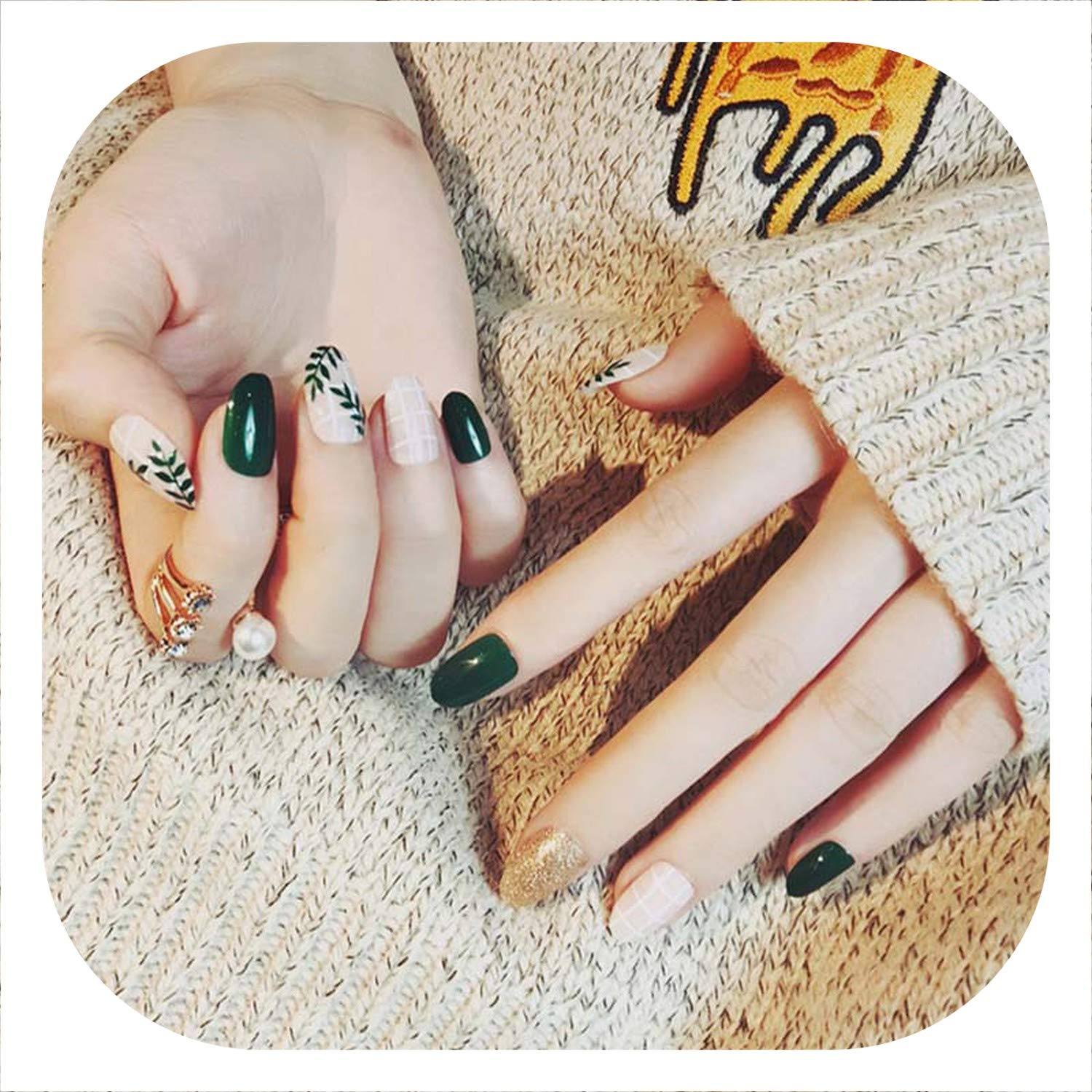 Amazon Com Diy Girls Summer False Nails Dark Green Jump Color